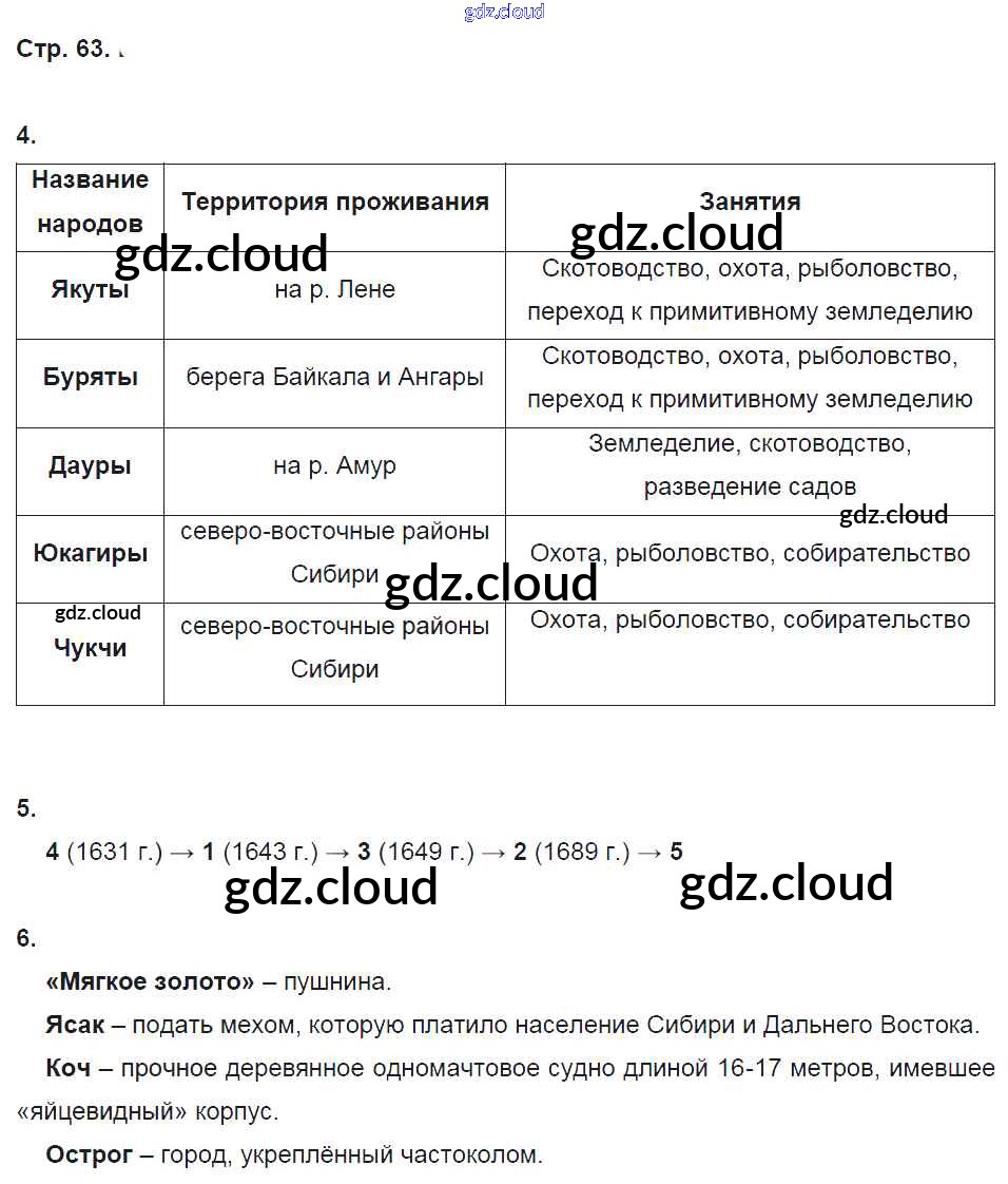 Ответ на задание 63 Рабочая тетрадь История за 7 (седьмой) класс Симонова, Клоков УМК 2018 ФГОС онлайн и без номера телефона.