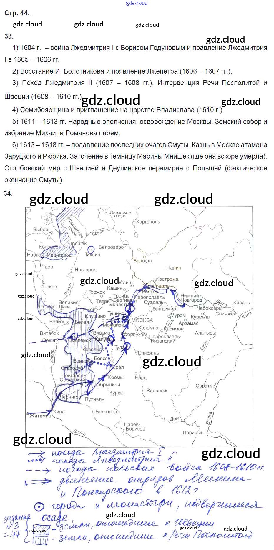 Ответ на задание 44 Рабочая тетрадь История за 7 (седьмой) класс Кочегаров Инновационная школа 2017 ФГОС онлайн и без номера телефона.