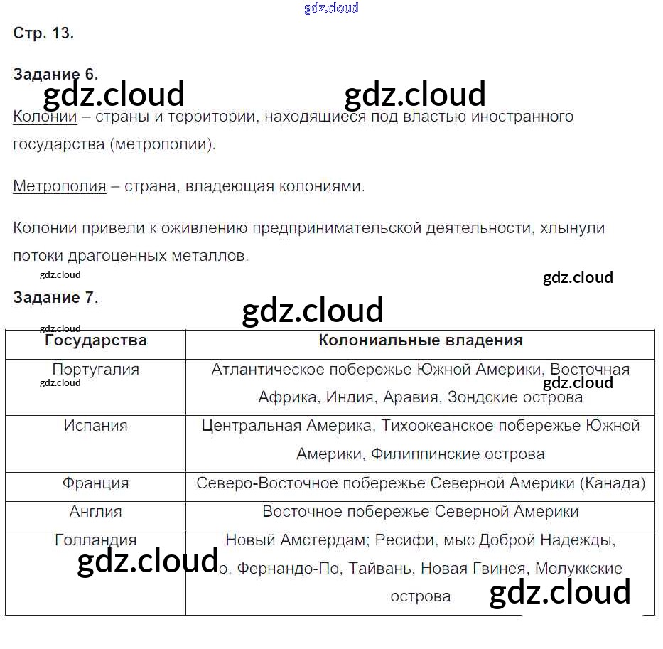 Ответ на задание 13 Рабочая тетрадь История за 7 (седьмой) класс Румянцев УМК 2018 Часть 1, 2