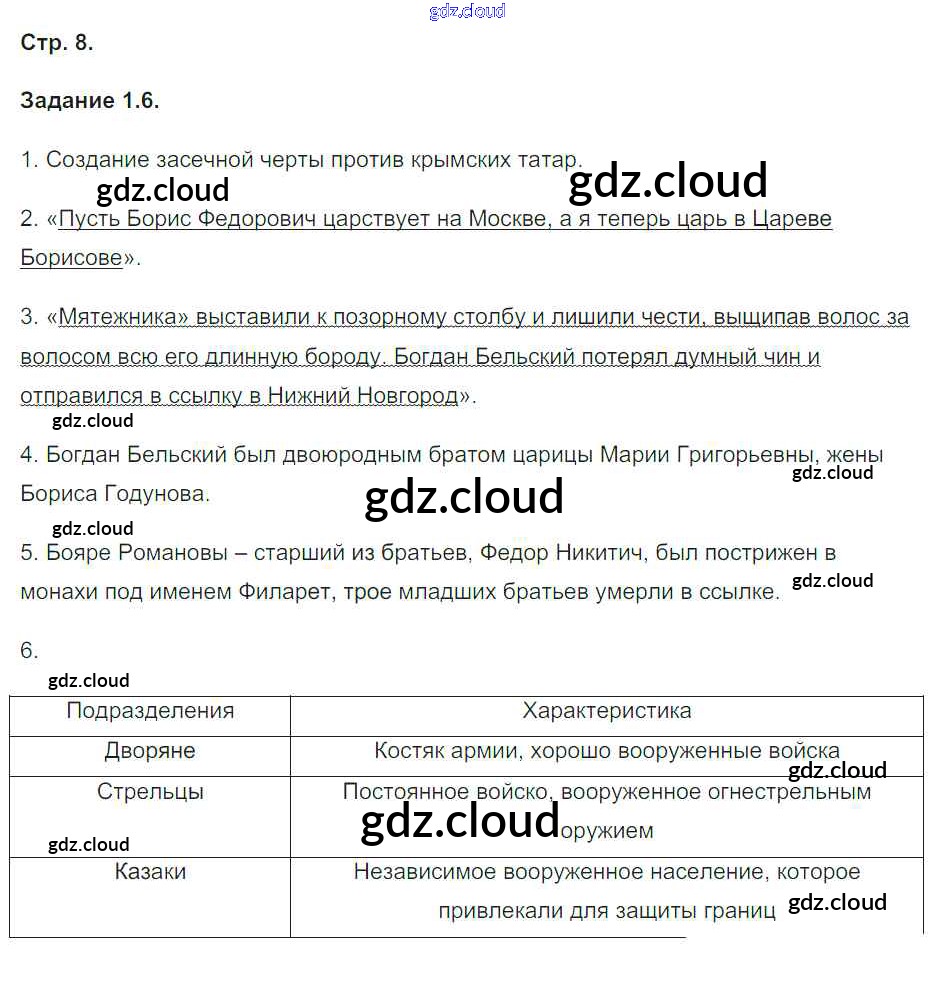 Ответ на задание 8 Рабочая тетрадь История за 7 (седьмой) класс Симонова УМК 2015 ФГОС онлайн и без номера телефона.