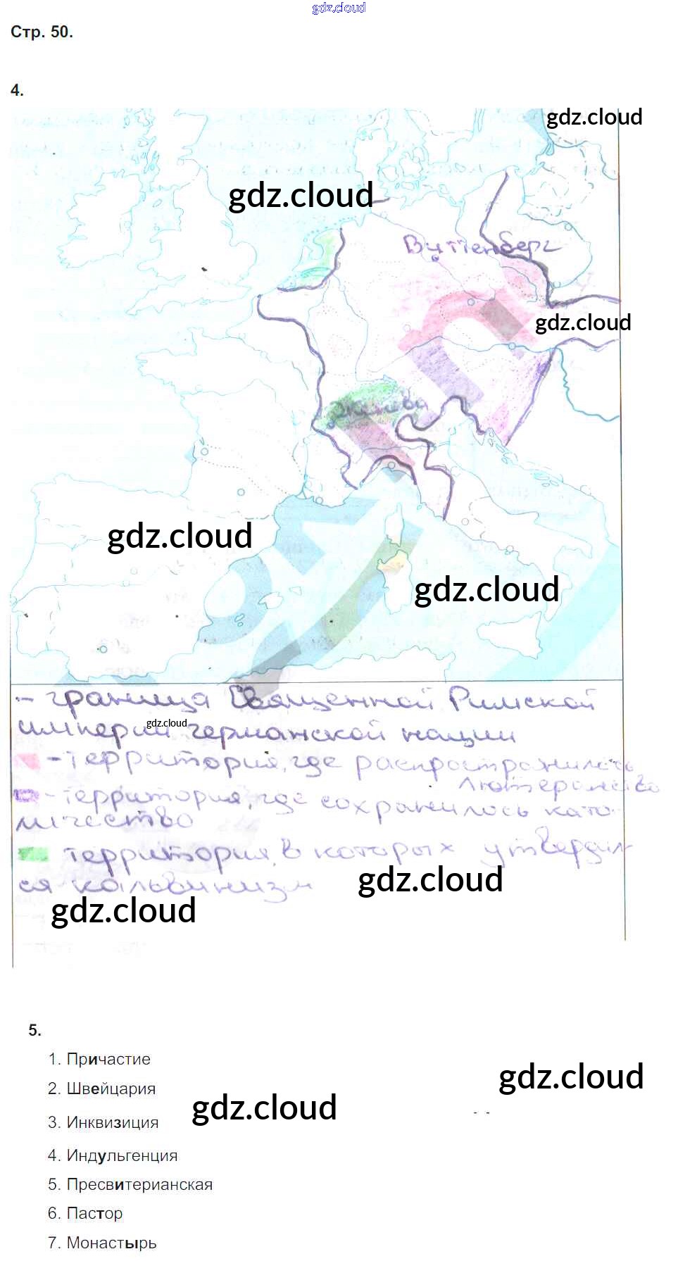 Ответ на задание 50 Рабочая тетрадь История за 7 (седьмой) класс Юдовская, Ванюшкина, Баранов УМК 2015 Часть 1, 2