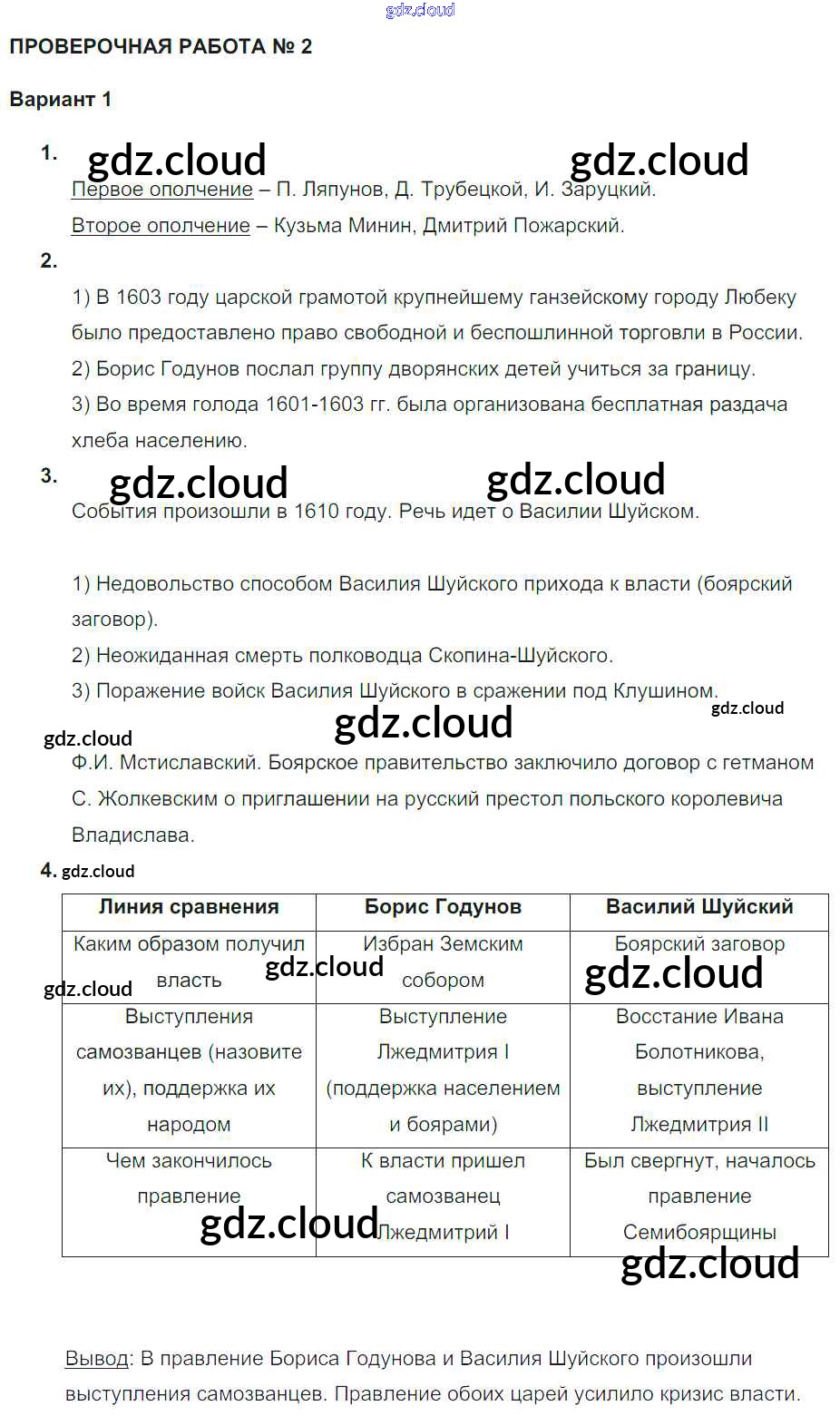 Россия на рубеже XVI-XVII вв. / проверочная работа 2 / вариант 1