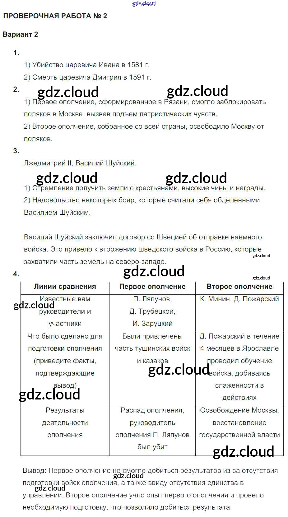 Проверочная работа 2 Ответы. Россия на рубеже XVI-XVII вв. по Истории 7 класс Тетрадь-экзаменатор Артасов Сферы Просвещение