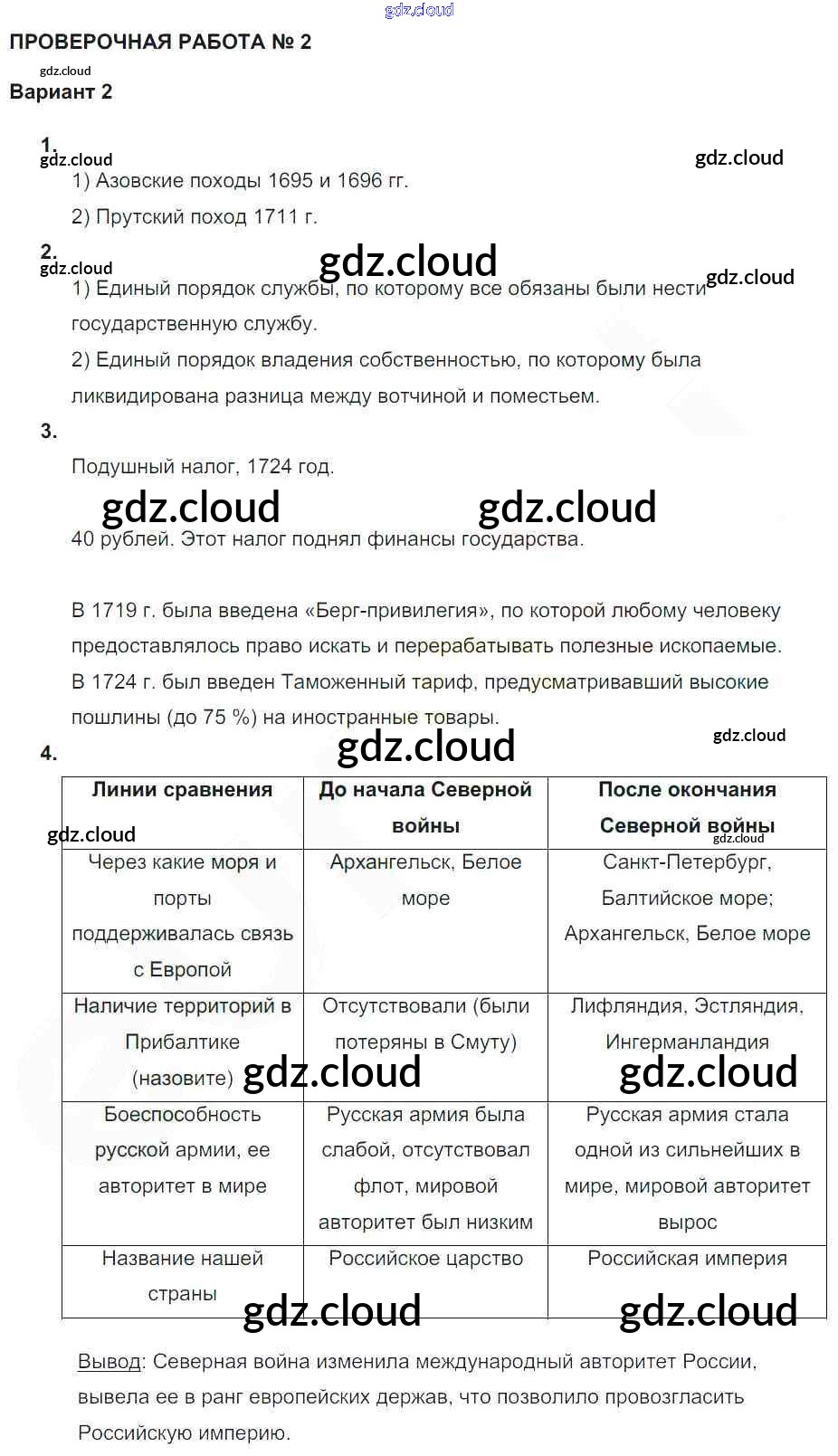 Проверочная работа 2 Ответы. Россия при Петре I по Истории 7 класс Тетрадь-экзаменатор Артасов Сферы Просвещение