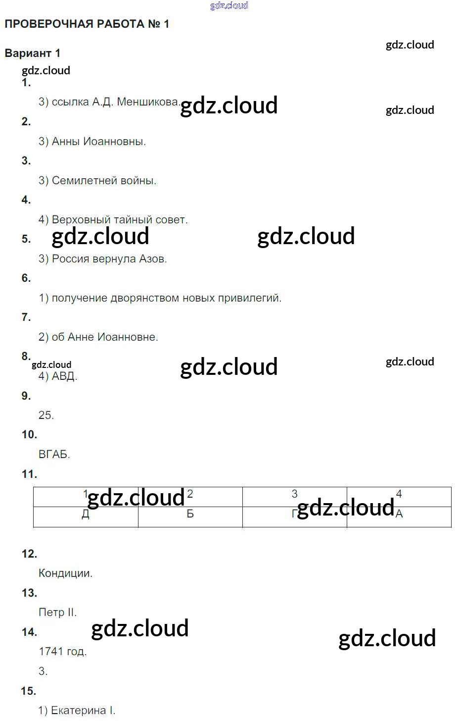 Проверочная работа 1 Ответы. Россия в 1725-1762 гг. по Истории 7 класс Тетрадь-экзаменатор Артасов Сферы Просвещение