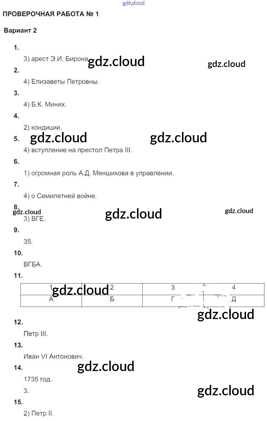 Россия в 1725-1762 гг. / проверочная работа 1 / вариант 2