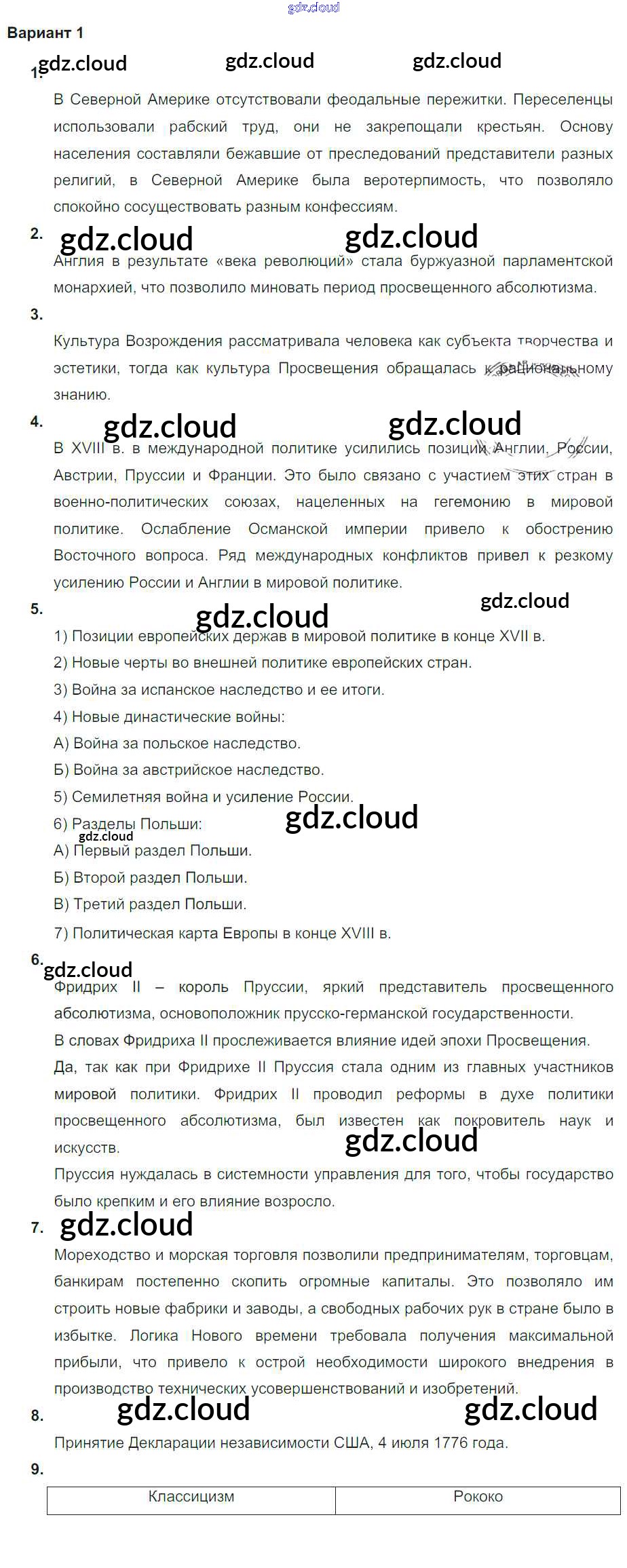 век просвещения / проверочная работа 2 / вариант 1