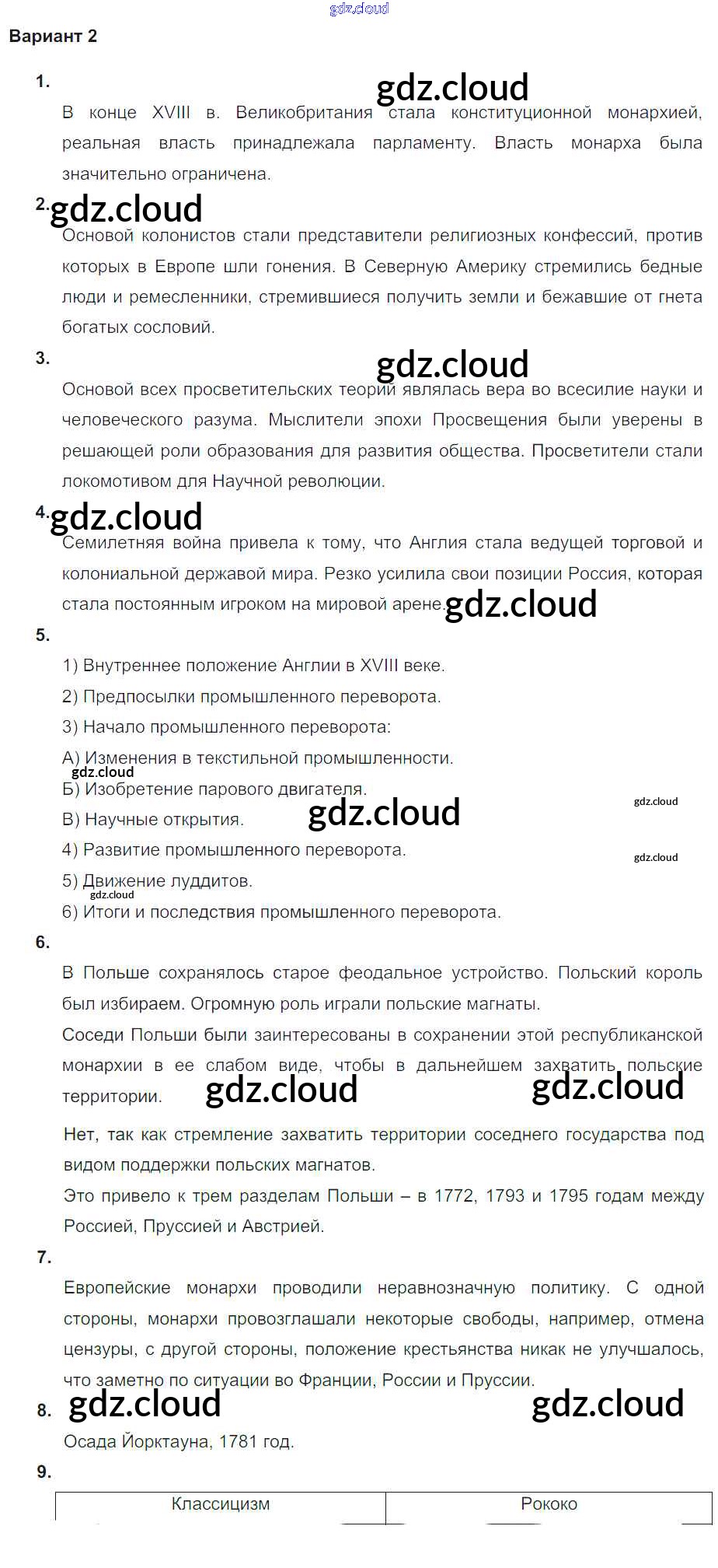 век просвещения / проверочная работа 2 / вариант 2