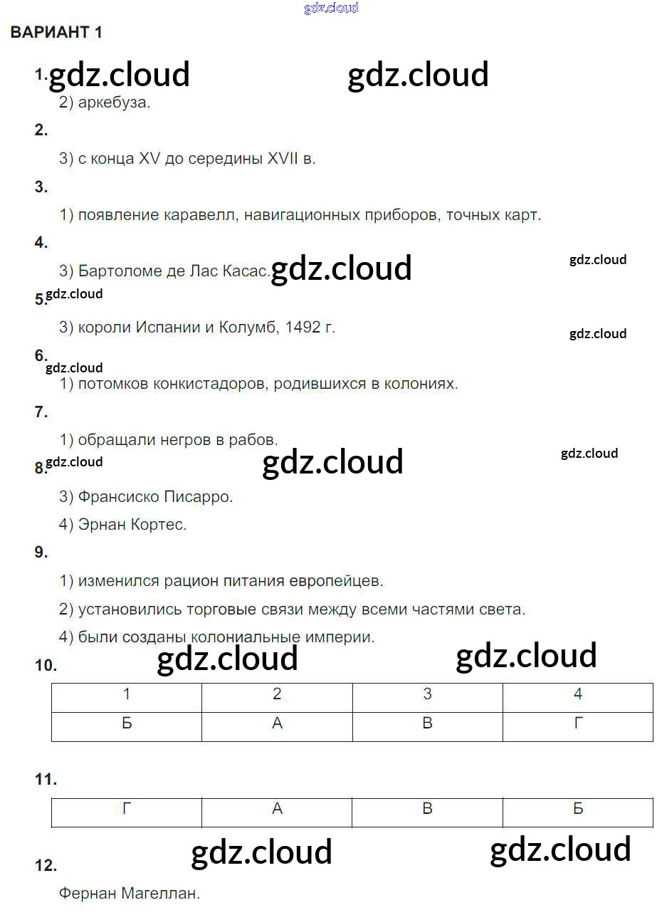 Проверочная работа 1 Ответы к теме Европа открывает мир по Истории 7 класс Тетрадь-экзаменатор Уколова Сферы Просвещение