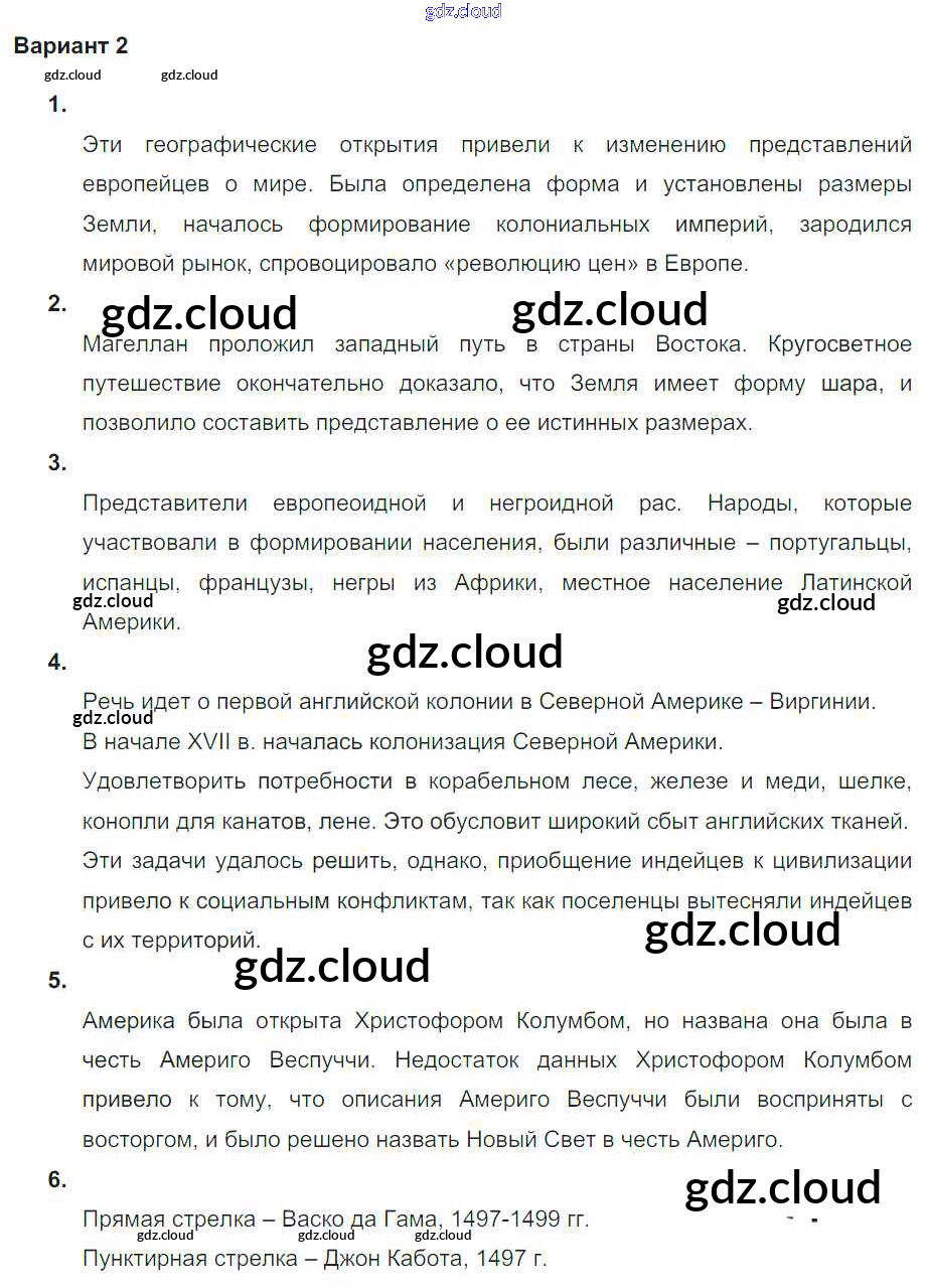 Проверочная работа 2 Ответы к теме Европа открывает мир по Истории 7 класс Тетрадь-экзаменатор Уколова Сферы Просвещение