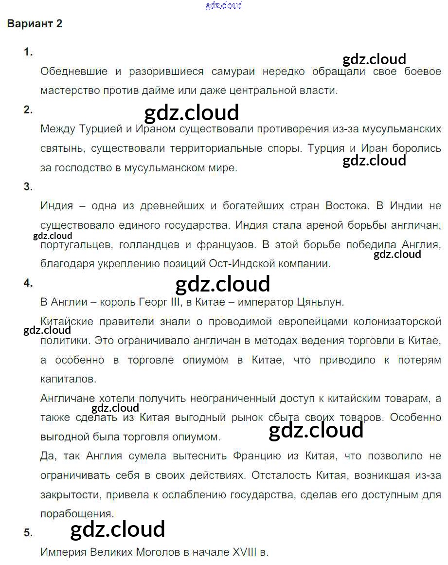 страны Востока в XVI-XVIII в веках / проверочная работа 2 / вариант 2