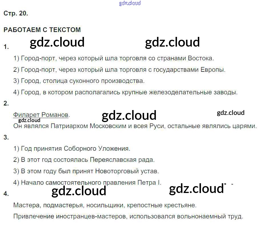 Ответ на задание 20 Тетрадь-тренажёр История за 7 (седьмой) класс Данилов, Лукутин, Артасов Сферы 2016 ФГОС онлайн и без номера телефона.