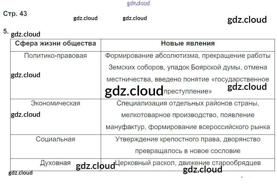Ответ на задание 43 Тетрадь-тренажёр История за 7 (седьмой) класс Данилов, Лукутин, Артасов Сферы 2016 ФГОС онлайн и без номера телефона.