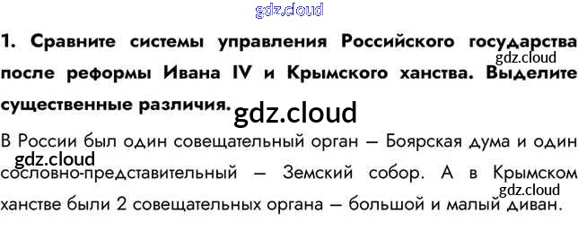 Думаем, сравниваем, размышляем Государства Поволжья, Северного Причерноморья, Сибири в середине XVI в. по Истории 7 класс Учебник Арсентьев Часть 1, 2 Просвещение