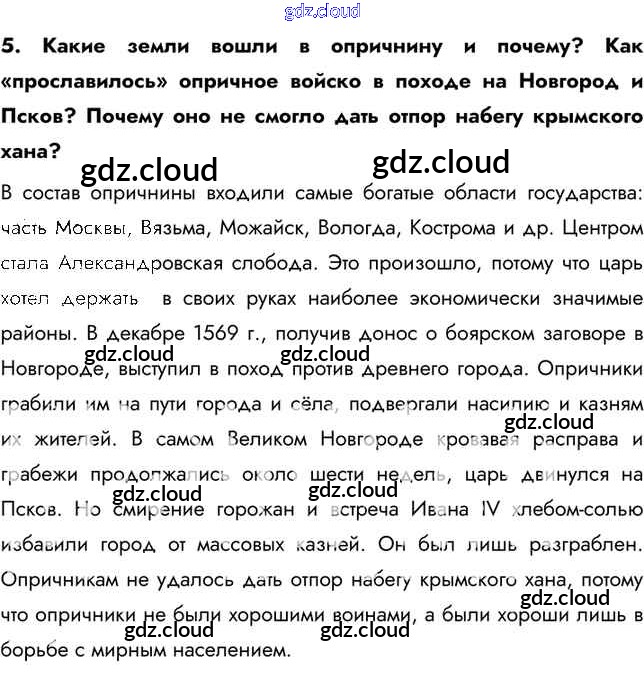 Ответ на задание 5 Учебник История за 7 (седьмой) класс Арсентьев, Данилов, Курукин 2016 Часть 1, 2