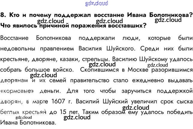 Ответ на задание 8 Учебник История за 7 (седьмой) класс Арсентьев, Данилов, Курукин 2016 Часть 1, 2