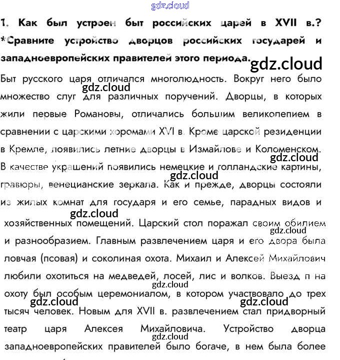 Вопросы и задания Сословный быт и картина мира русского человека в XVII в. по Истории 7 класс Учебник Арсентьев Часть 1, 2 Просвещение
