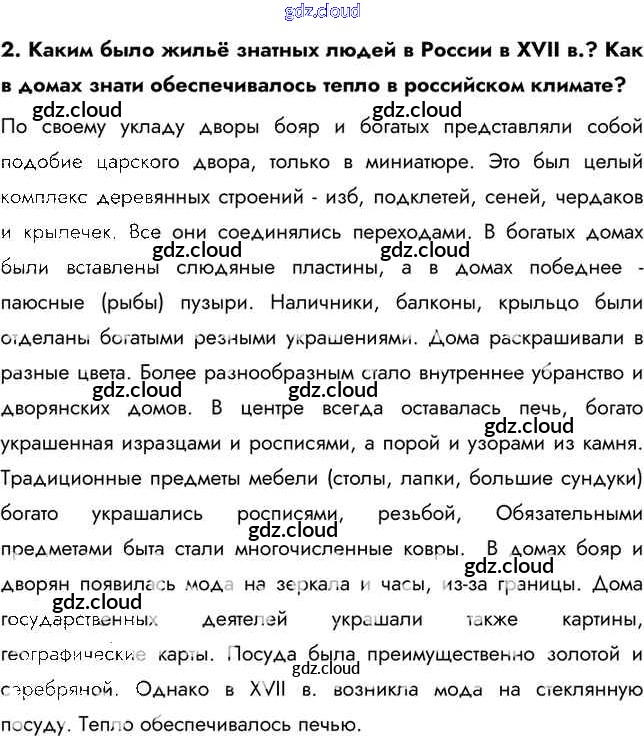 Вопросы и задания Сословный быт и картина мира русского человека в XVII в. по Истории 7 класс Учебник Арсентьев Часть 1, 2 Просвещение