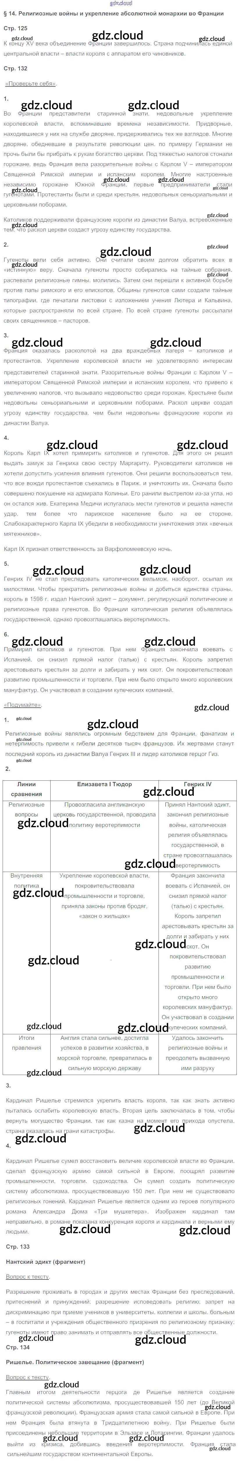Ответы к Параграфам по Истории 7 класс Учебник Юдовская Просвещение