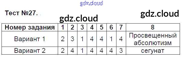 Ответ на задание 27 Контрольно-измерительные материалы (КИМ) История за 8 (восьмой) класс Калачева 2016 ФГОС онлайн и без номера телефона.