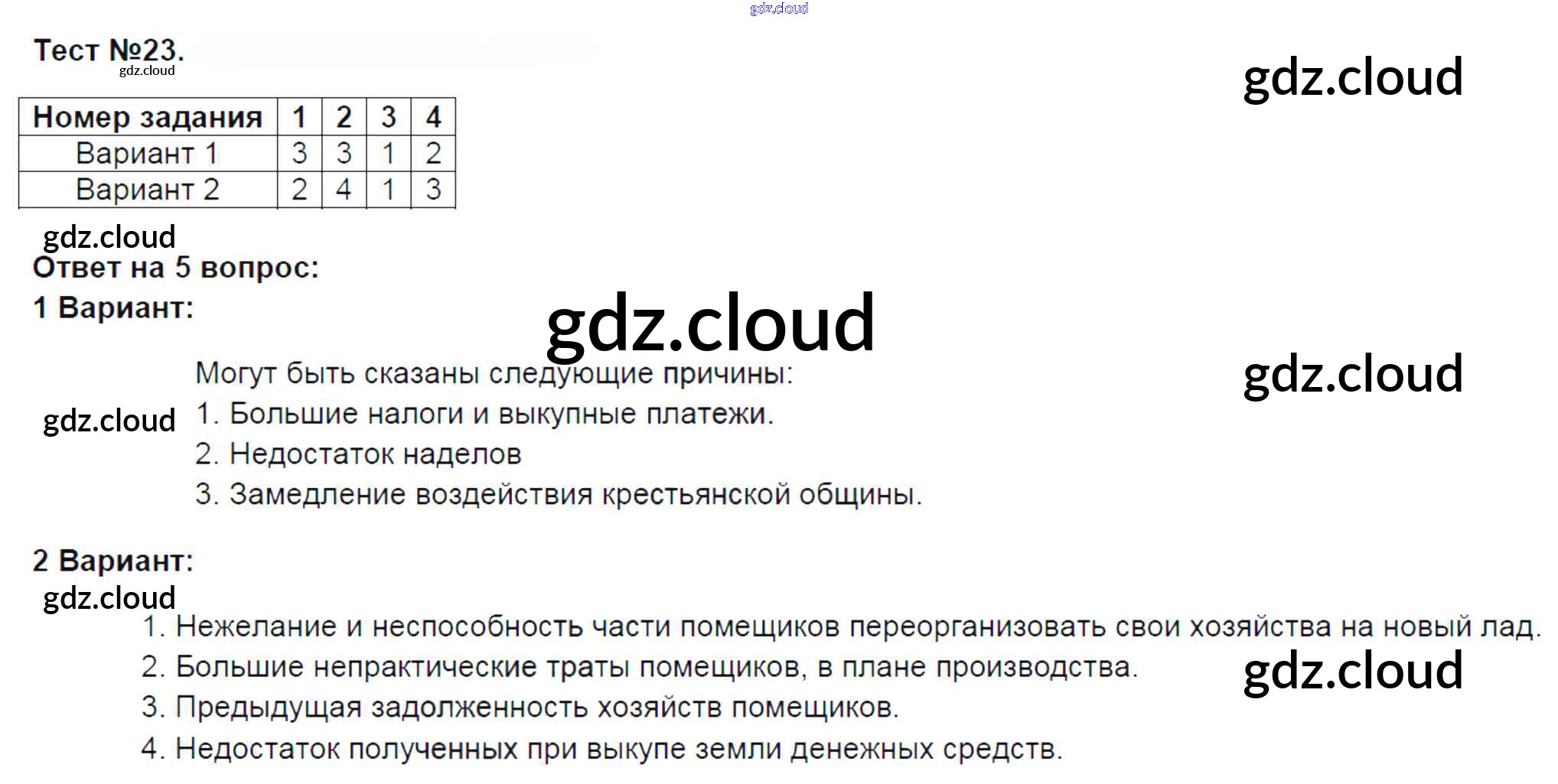 Ответ на задание 23 Контрольно-измерительные материалы (КИМ) История за 8 (восьмой) класс Смирнов 2015 ФГОС онлайн и без номера телефона.