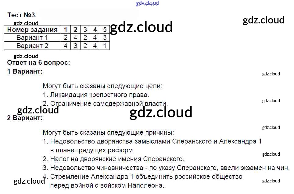 Ответы к Тестам по Истории 8 класс Контрольно-измерительные материалы (КИМ) Смирнов Экзамен