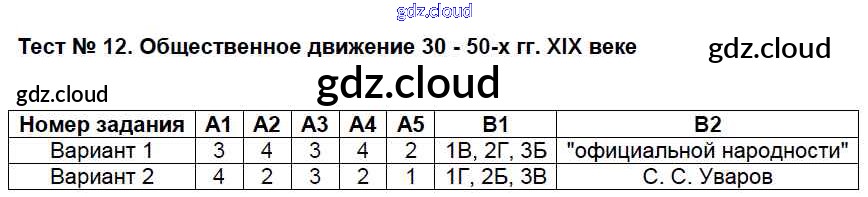 Ответ на задание 12 Контрольно-измерительные материалы (КИМ) История за 8 (восьмой) класс Волкова 2017 ФГОС онлайн и без номера телефона.