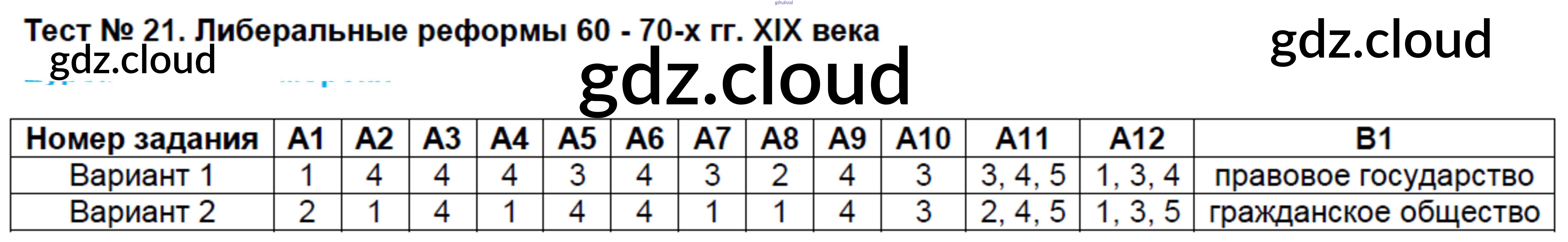 Ответ на задание 21 Контрольно-измерительные материалы (КИМ) История за 8 (восьмой) класс Волкова 2017 ФГОС онлайн и без номера телефона.
