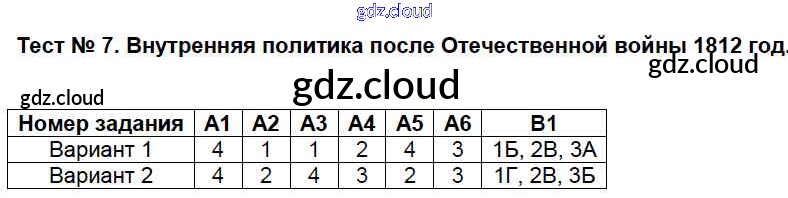 Ответ на задание 7 Контрольно-измерительные материалы (КИМ) История за 8 (восьмой) класс Волкова 2017 ФГОС онлайн и без номера телефона.