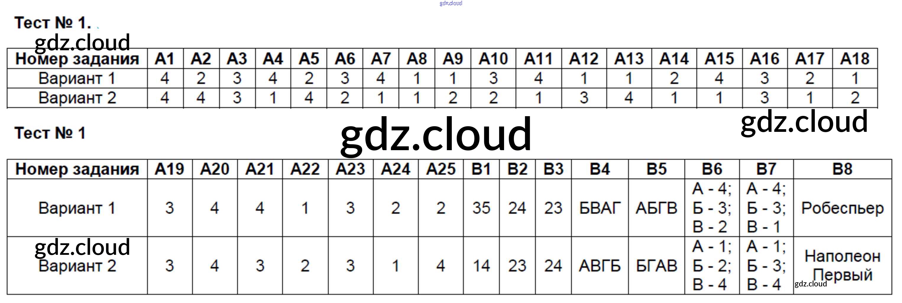 Ответы к Тестам по Истории 8 класс Контрольно-измерительные материалы (КИМ) Волкова ВАКО