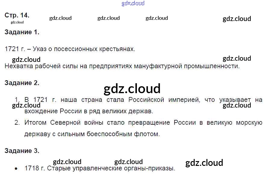 Ответ на задание 14 Контрольные работы История за 8 (восьмой) класс Артасов УМК 2016 ФГОС онлайн и без номера телефона.