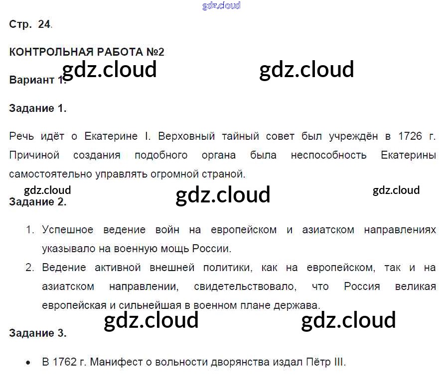 Ответ на задание 24 Контрольные работы История за 8 (восьмой) класс Артасов УМК 2016 ФГОС онлайн и без номера телефона.