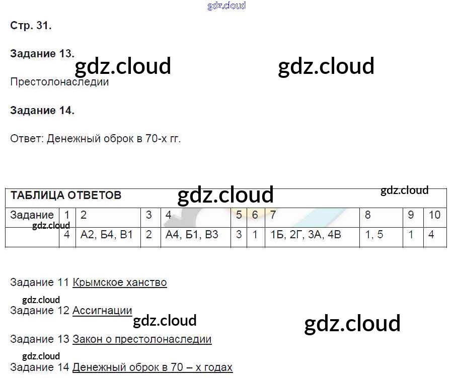 Ответ на задание 31 Контрольные работы История за 8 (восьмой) класс Артасов УМК 2016 ФГОС онлайн и без номера телефона.