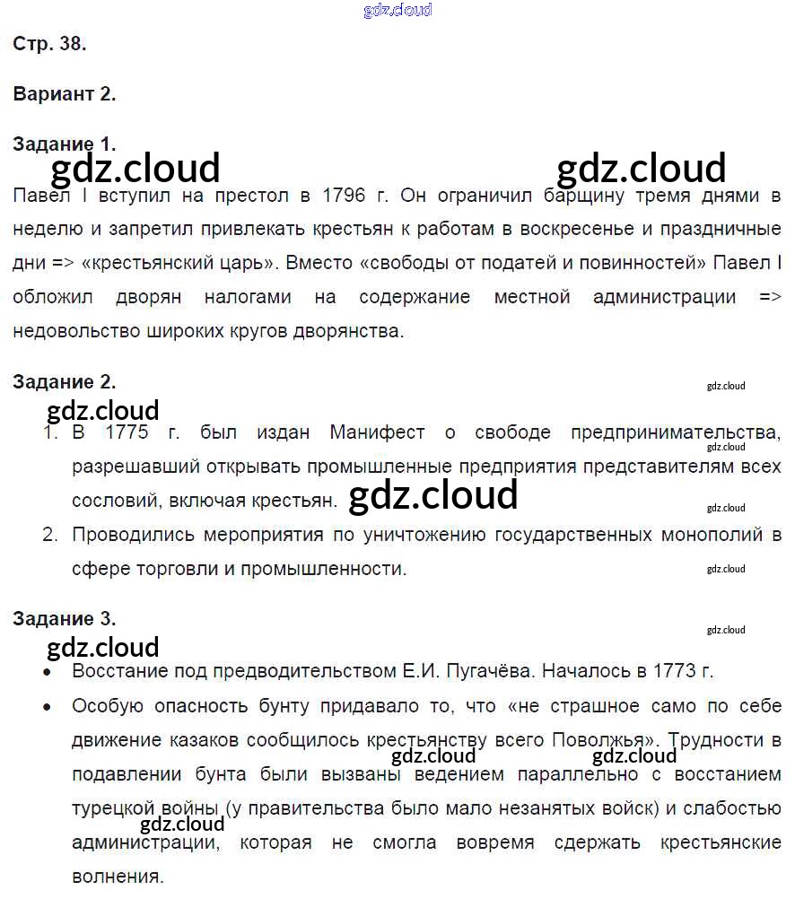 Ответ на задание 38 Контрольные работы История за 8 (восьмой) класс Артасов УМК 2016 ФГОС онлайн и без номера телефона.