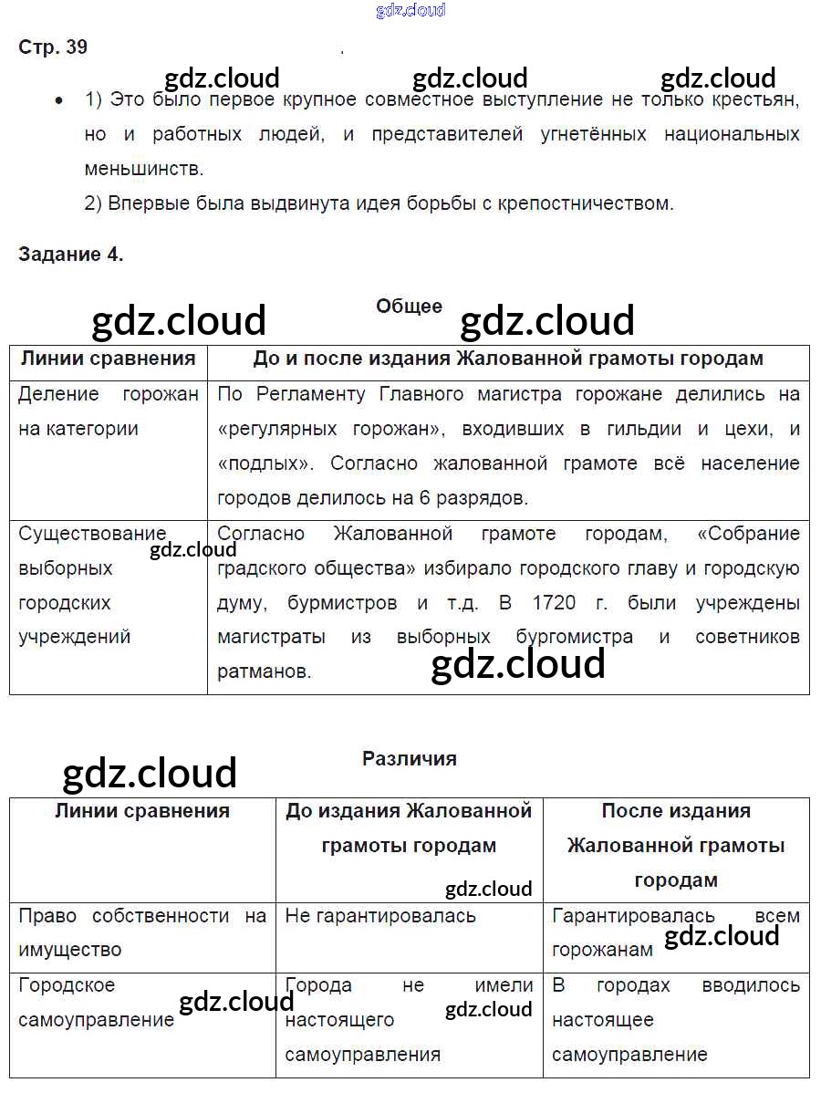 Ответ на задание 39 Контрольные работы История за 8 (восьмой) класс Артасов УМК 2016 ФГОС онлайн и без номера телефона.