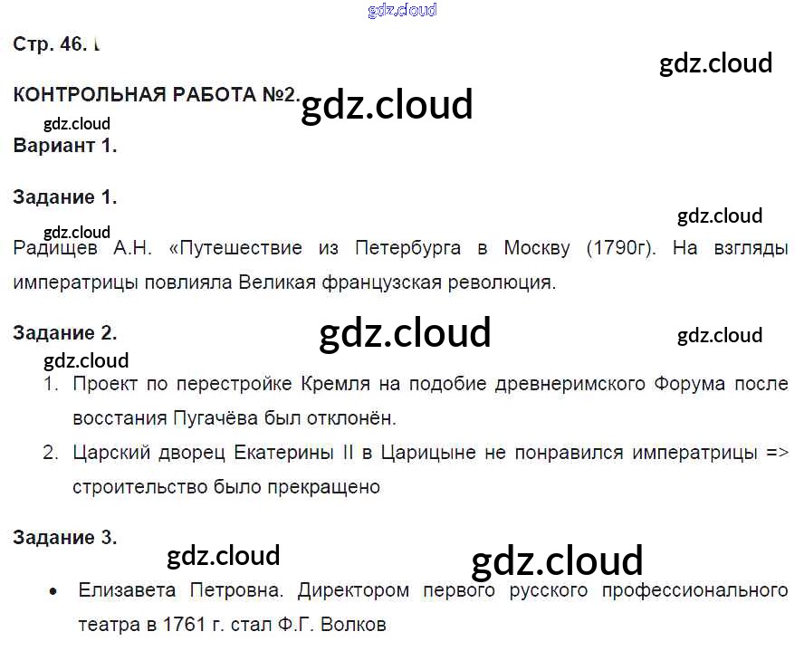 Ответ на задание 46 Контрольные работы История за 8 (восьмой) класс Артасов УМК 2016 ФГОС онлайн и без номера телефона.