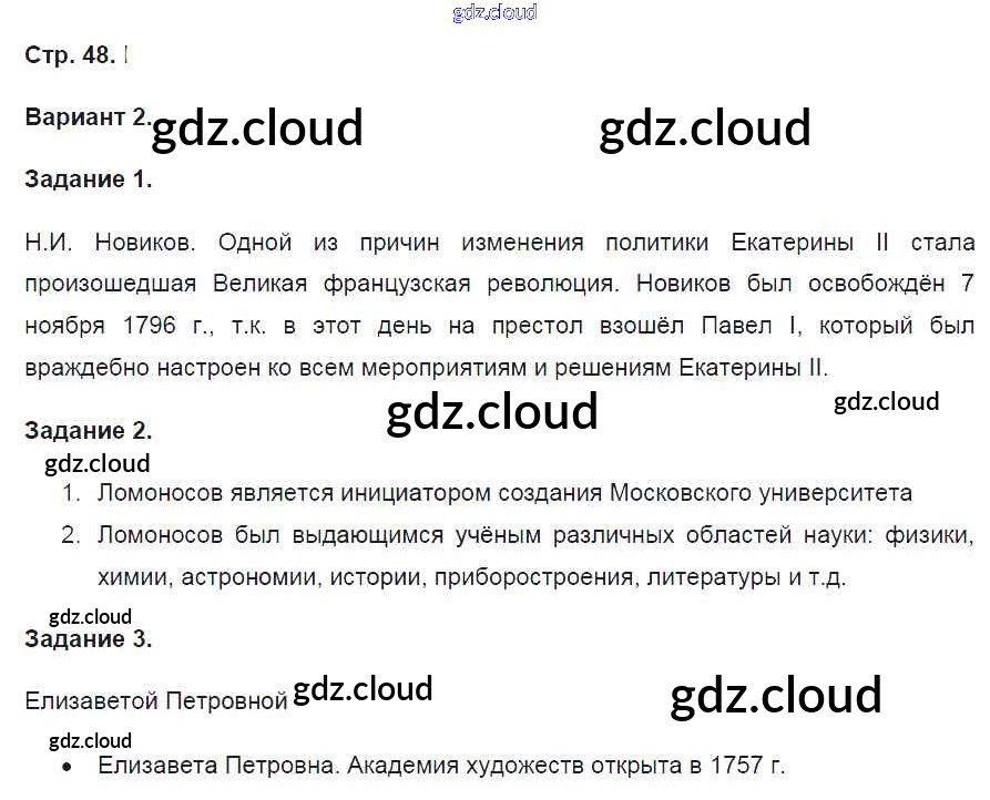 Ответ на задание 48 Контрольные работы История за 8 (восьмой) класс Артасов УМК 2016 ФГОС онлайн и без номера телефона.