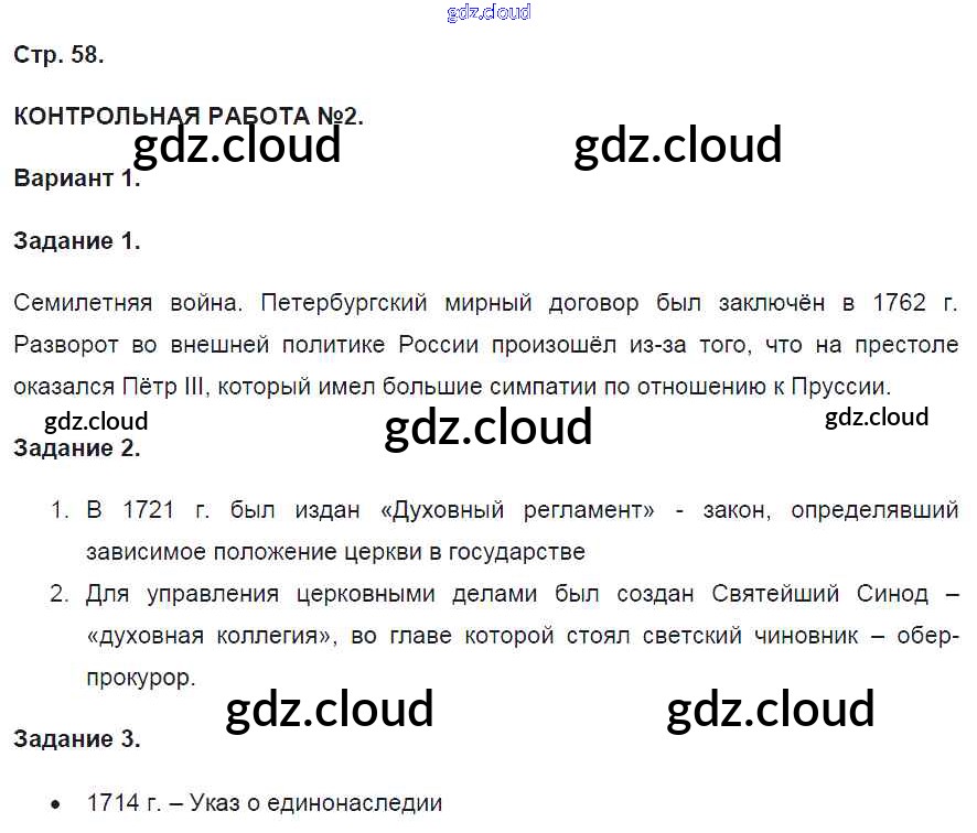 Ответ на задание 58 Контрольные работы История за 8 (восьмой) класс Артасов УМК 2016 ФГОС онлайн и без номера телефона.