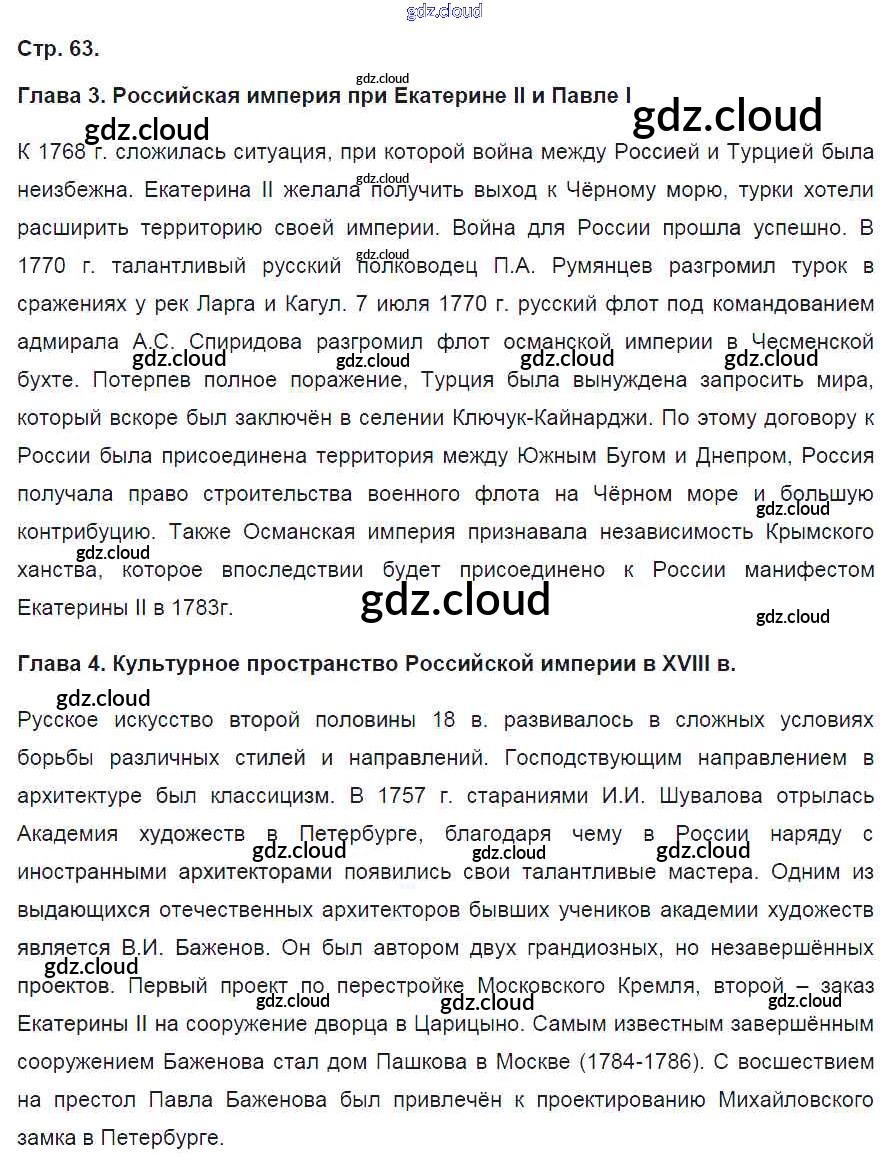 Ответ на задание 63 Контрольные работы История за 8 (восьмой) класс Артасов УМК 2016 ФГОС онлайн и без номера телефона.
