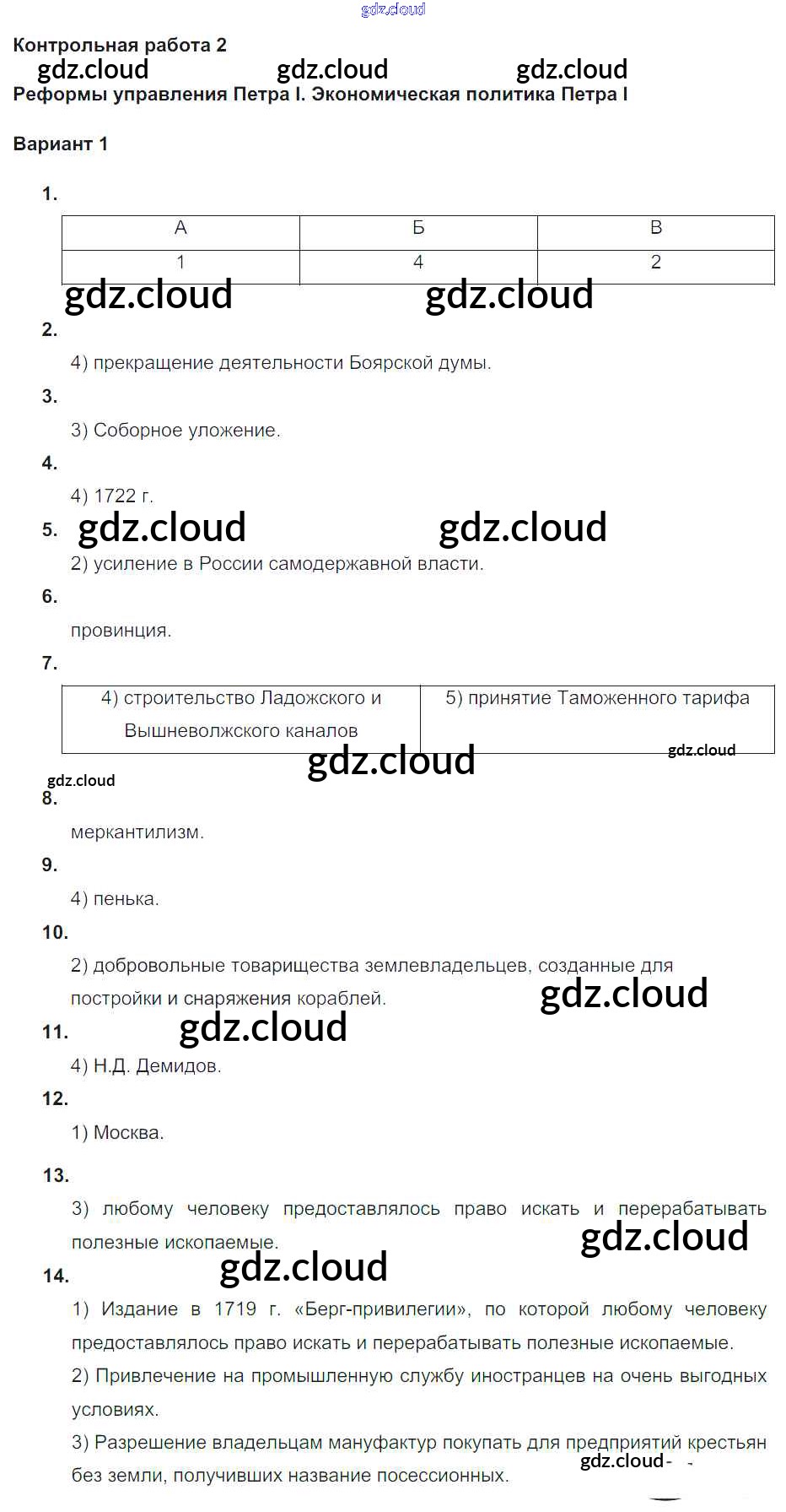 Ответы к КР-2. Варианты по Истории 8 класс Контрольные работы Соловьев УМК Экзамен