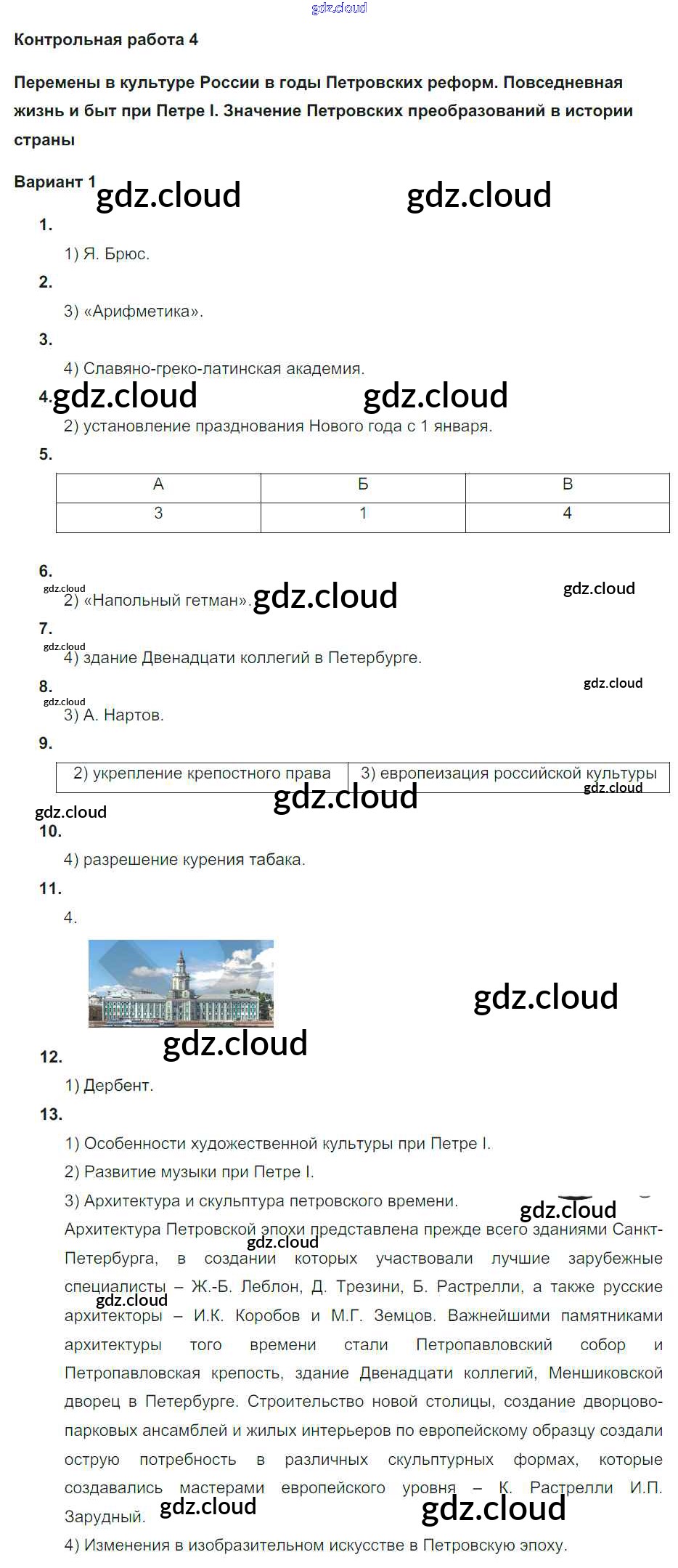 Ответы к КР-4. Варианты по Истории 8 класс Контрольные работы Соловьев УМК Экзамен