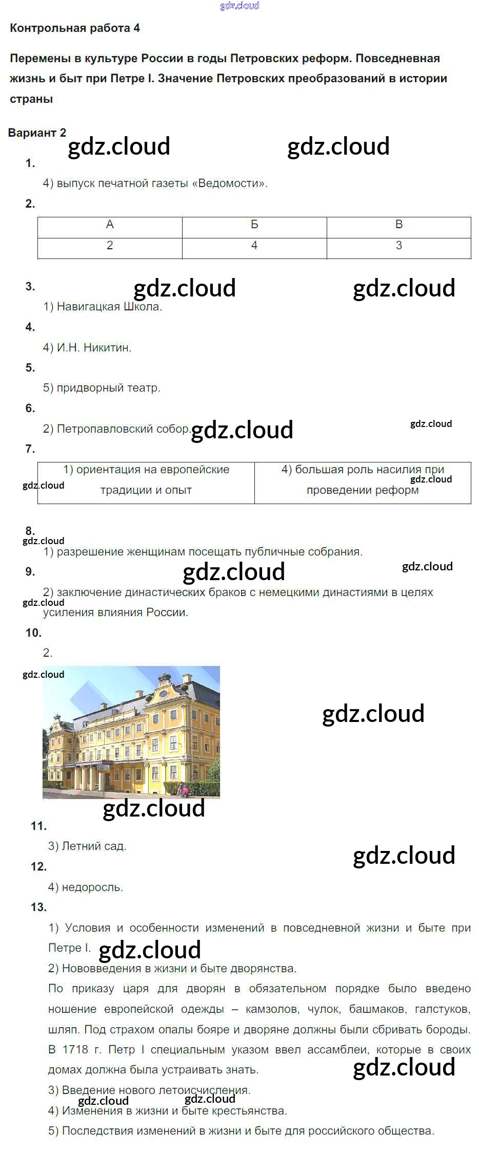 Ответы к КР-4. Варианты по Истории 8 класс Контрольные работы Соловьев УМК Экзамен