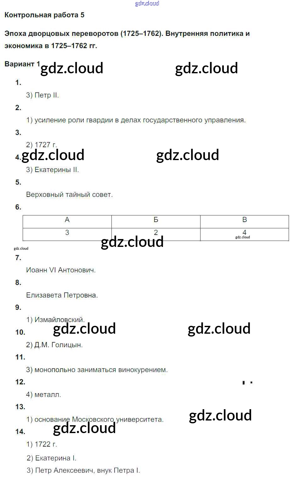 Ответы к КР-5. Варианты по Истории 8 класс Контрольные работы Соловьев УМК Экзамен