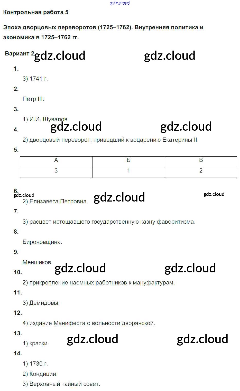 Ответы к КР-5. Варианты по Истории 8 класс Контрольные работы Соловьев УМК Экзамен