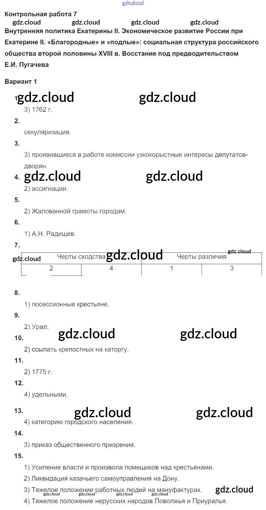 Ответы к КР-7. Варианты по Истории 8 класс Контрольные работы Соловьев УМК Экзамен