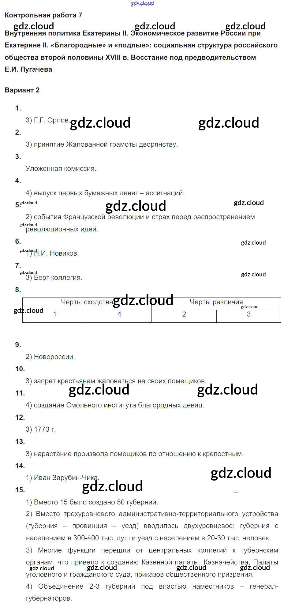 Ответы к КР-7. Варианты по Истории 8 класс Контрольные работы Соловьев УМК Экзамен
