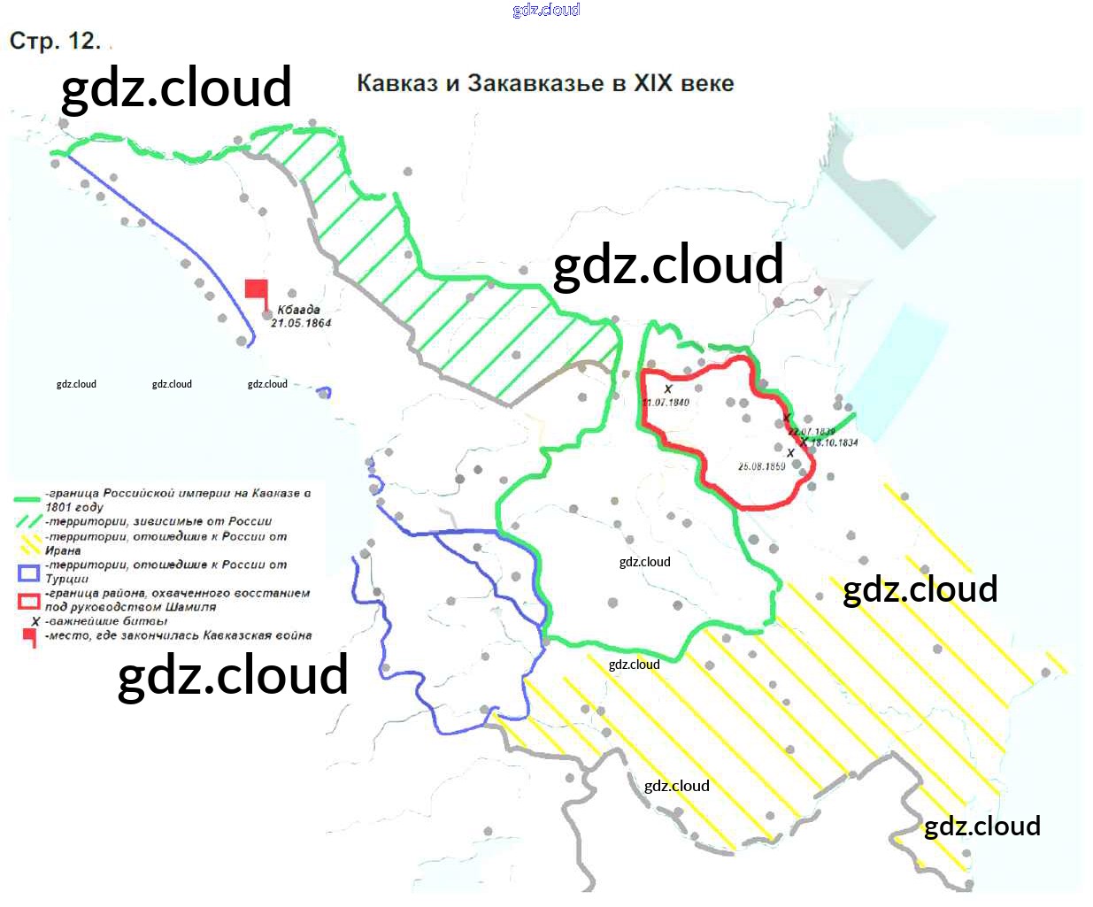 Ответ на задание 12 Контурные карты История за 8 (восьмой) класс Колпаков, Пономарев 2017 ФГОС онлайн и без номера телефона.