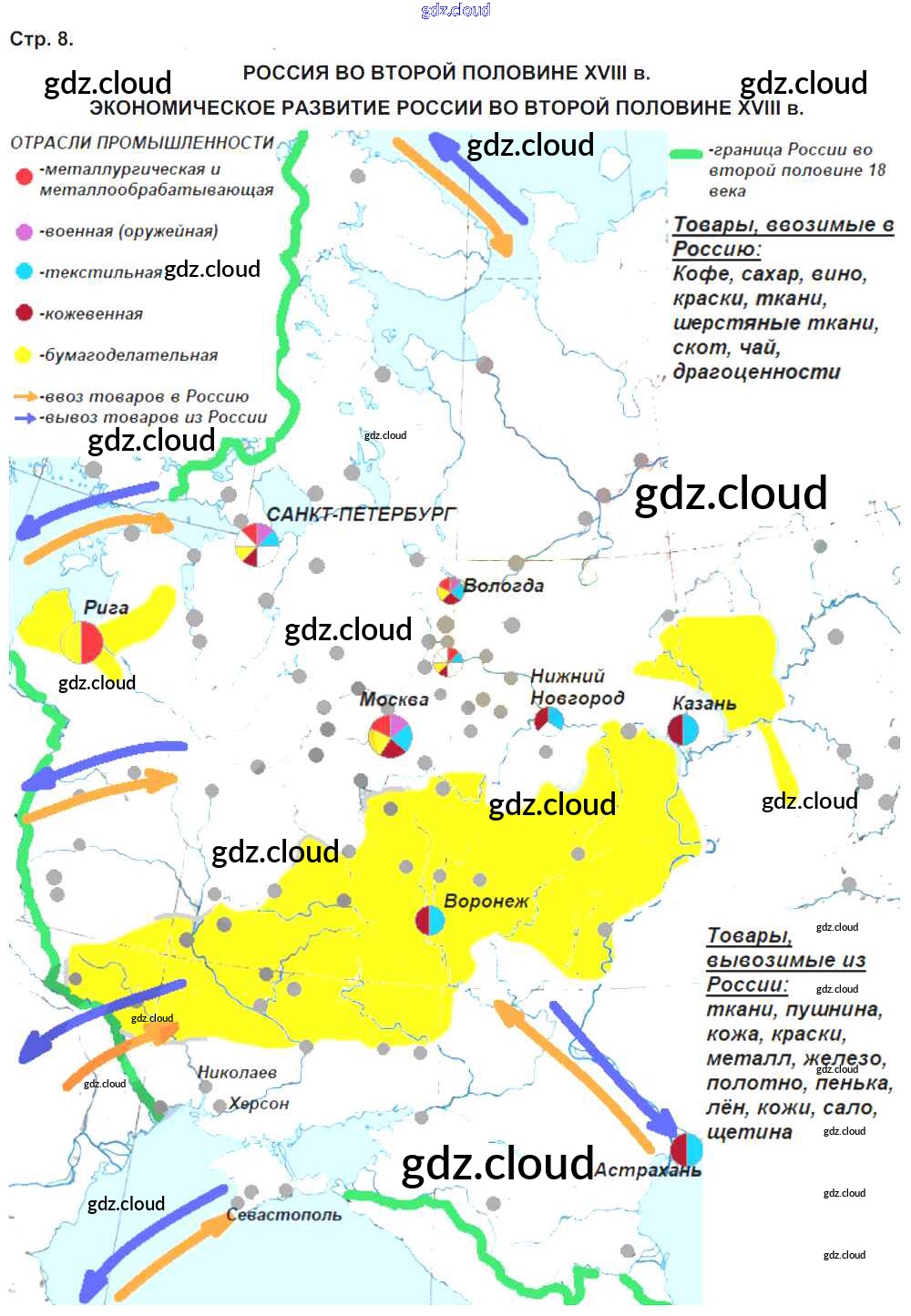 Ответ на задание 8 Контурные карты История за 8 (восьмой) класс Тороп УМК 2017 ФГОС онлайн и без номера телефона.