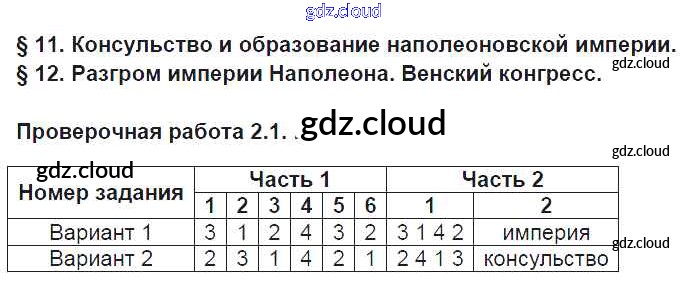 Ответы к Проверочным работам по Истории 8 класс Проверочные и контрольные работы Баранов УМК Просвещение