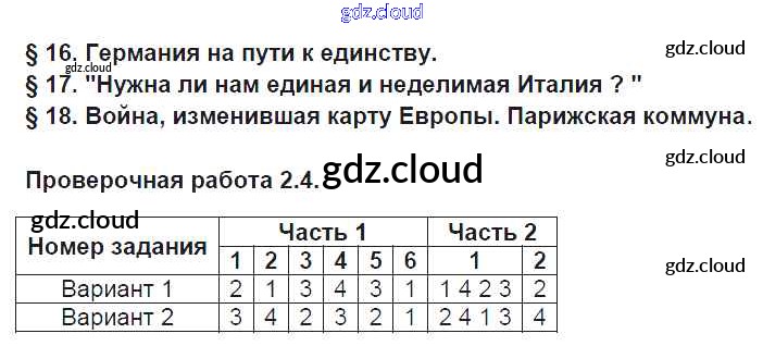 Ответы к Проверочным работам по Истории 8 класс Проверочные и контрольные работы Баранов УМК Просвещение